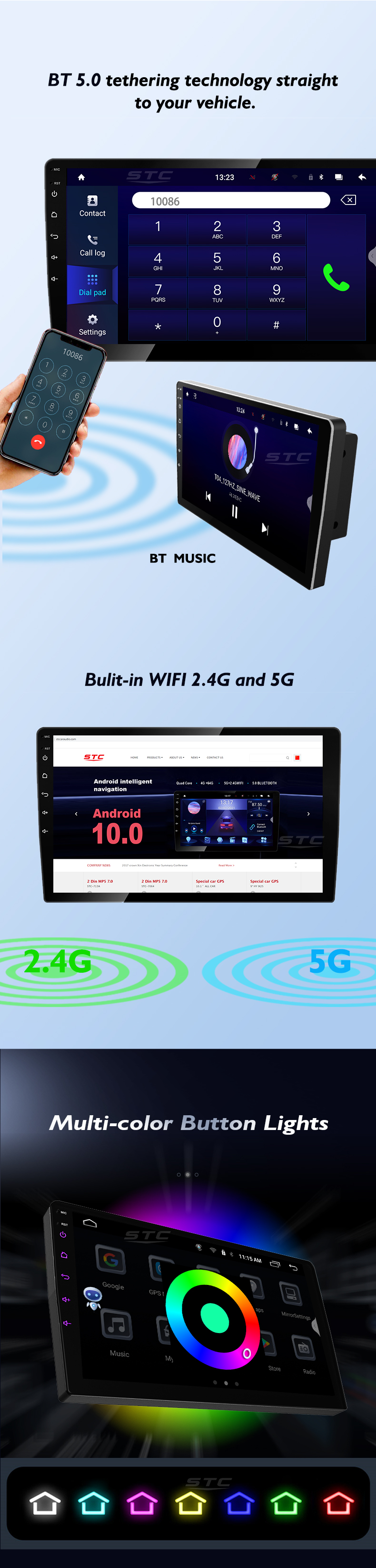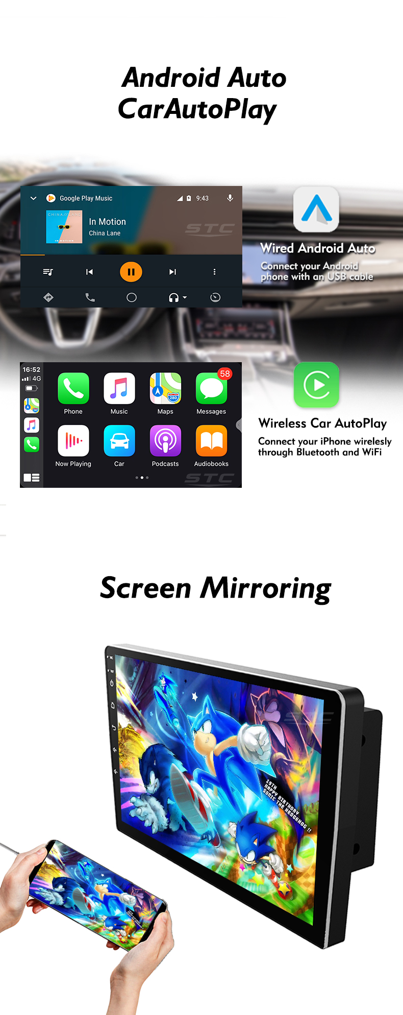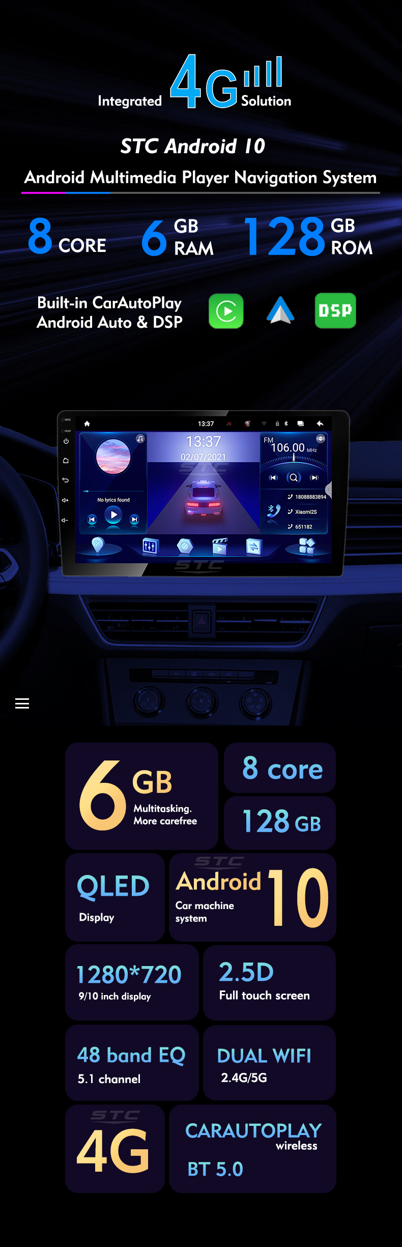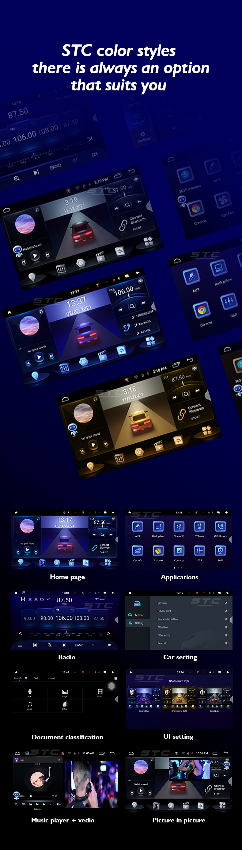 | Function | Stereo, RGB, Shock Resistant, Amplifier, Built-In Speaker, Multi-language support, Mirror Link, android auto, picture in picture |
