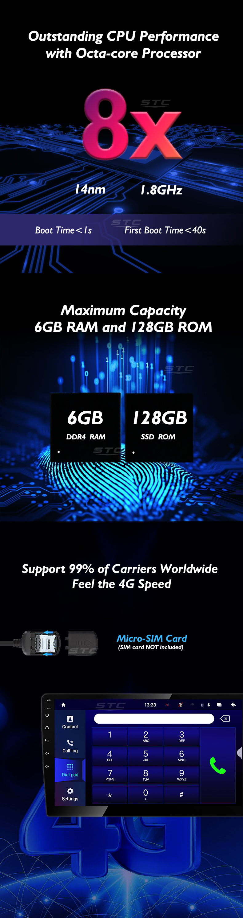 | Connection | usb, TF Card, 3G/4G Sim Card, Built-in WiFi |